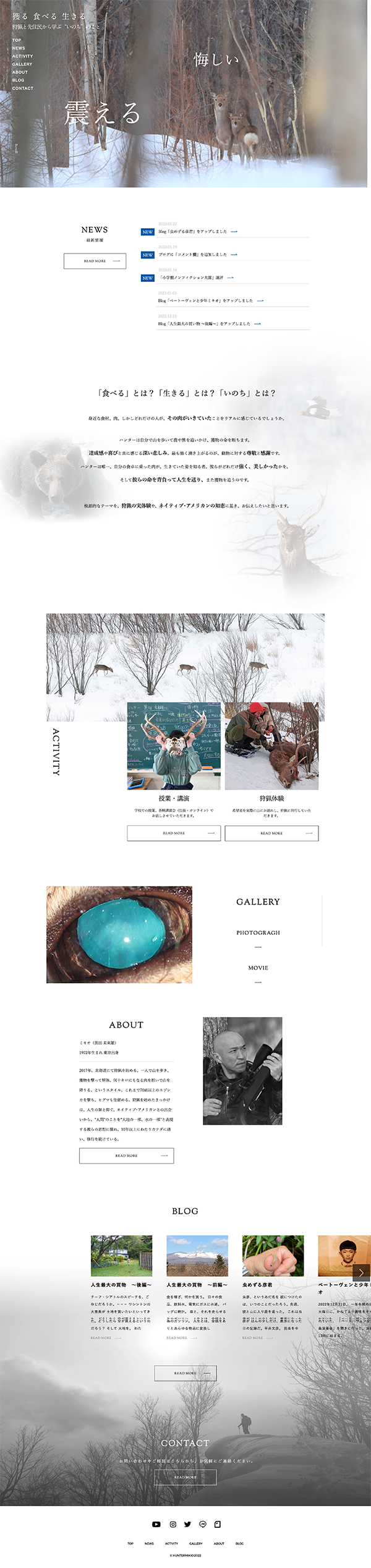 北海道を拠点に活動するハンター黒田未来雄氏のサイトを制作いたしました。