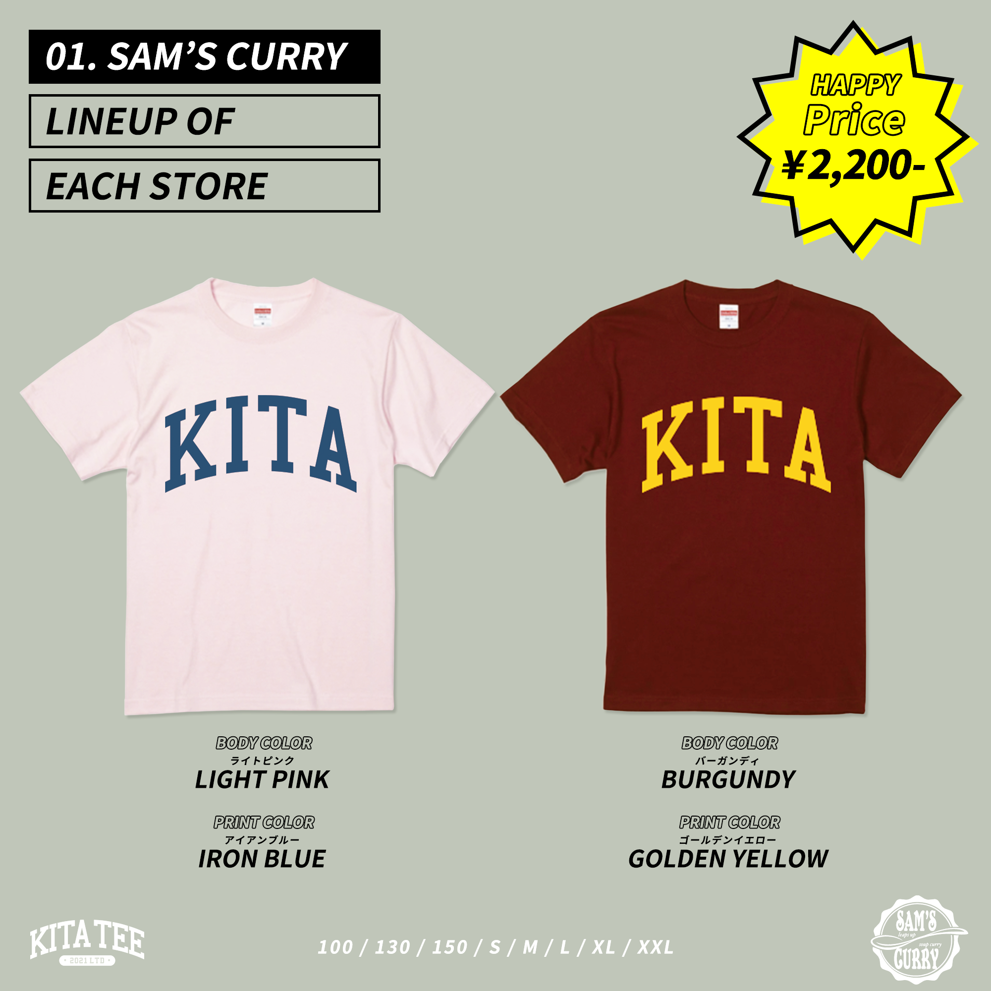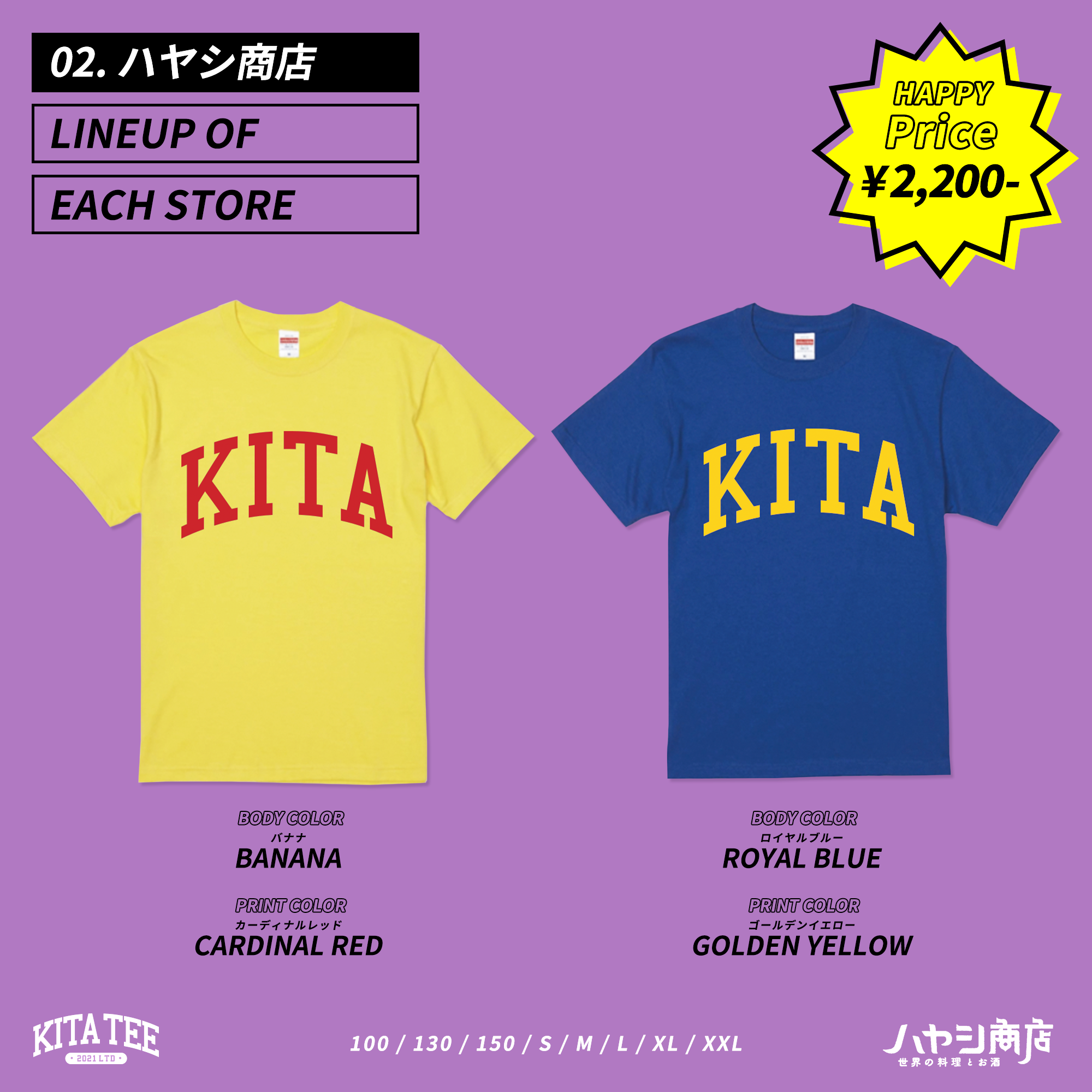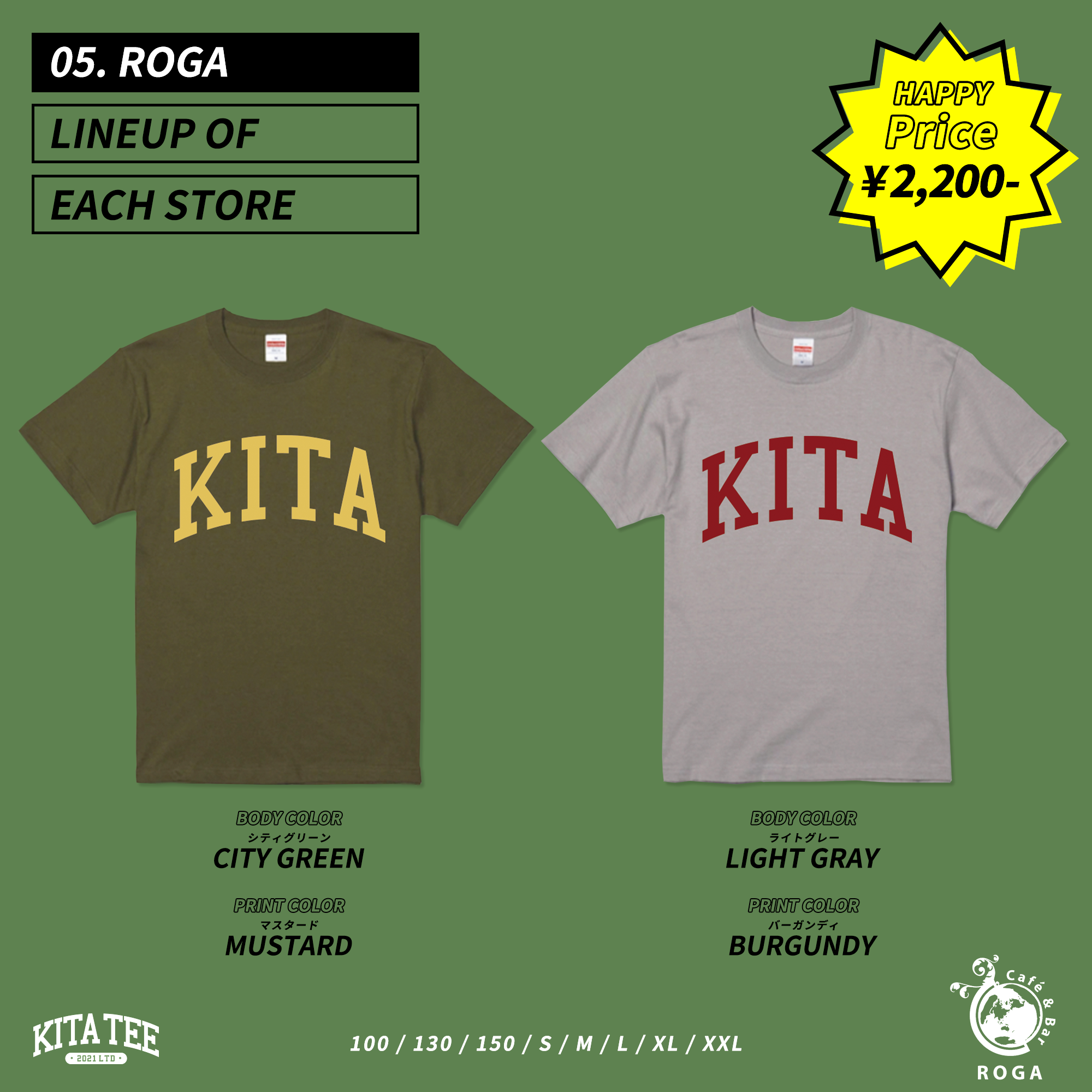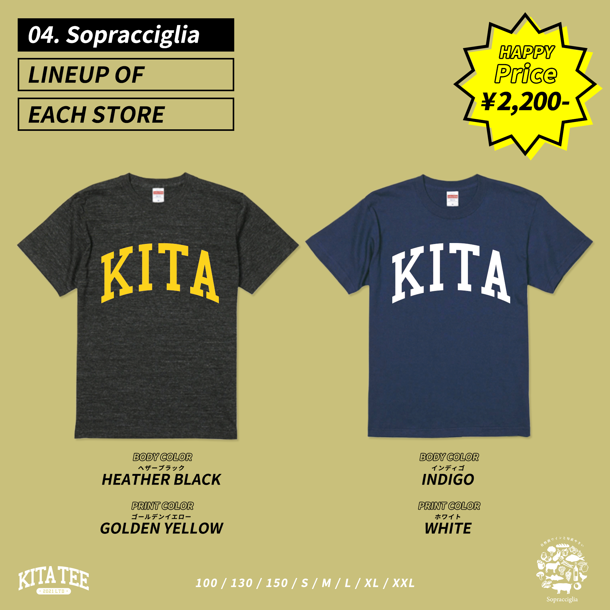 札幌市北区エリアの飲食店合同企画 KITATEE を制作いたしました。 5店舗各2色展開 気に入った色を各店舗で購入いただく内容です。