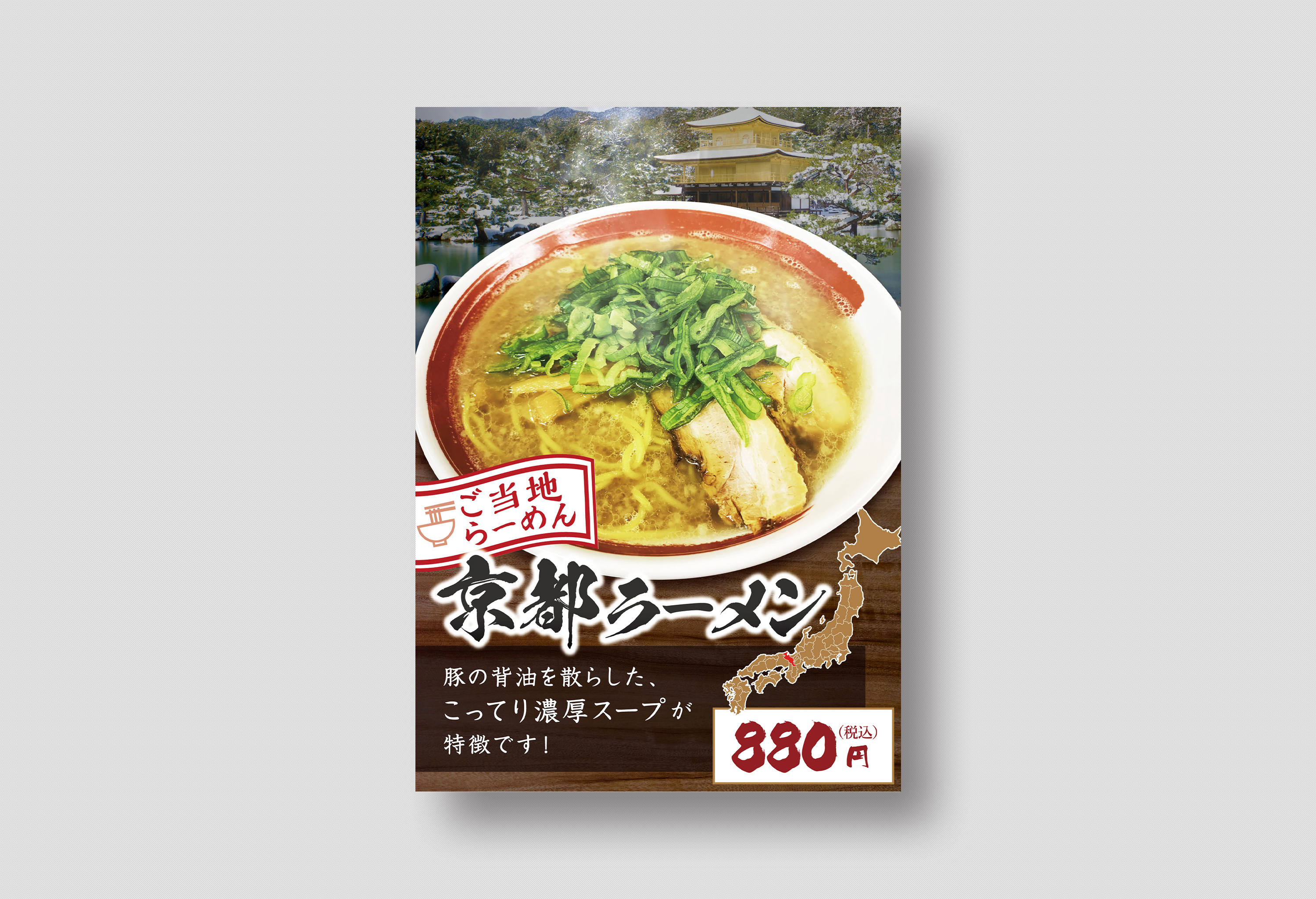 岩見沢が本店のラーメン専科 羅妃焚 苫小牧店様の期間限定らーめんのポスターを制作いたしました。